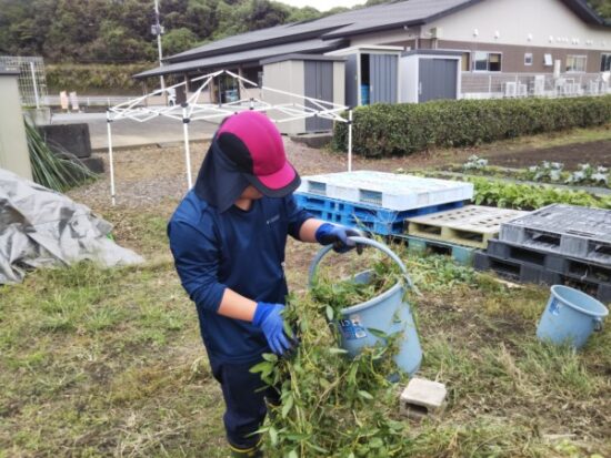この2週間はたくさんの作業を行いました。落花生の種取りも少し涼しくなりましたが、日差しは暑かったですね。