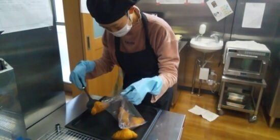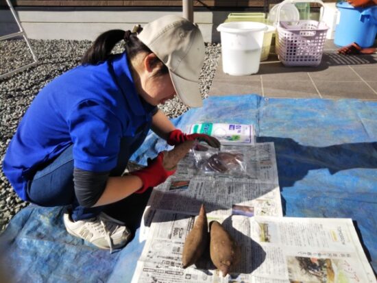 金曜日、就労B型の仲間たちと放ディの低学年さんと楽しく交流をしました♬作業では、サツマイモや里芋の袋詰めをしました。