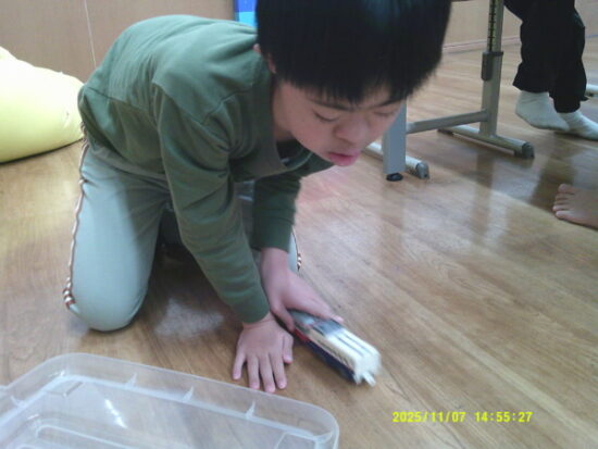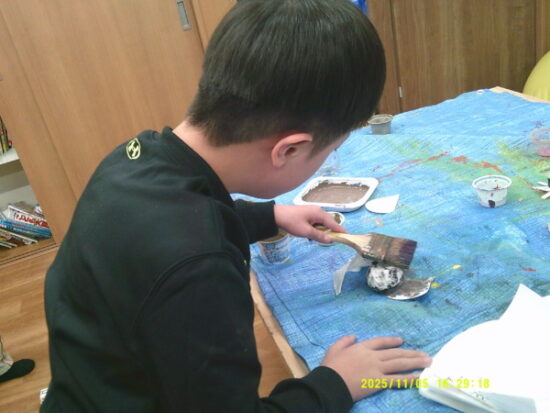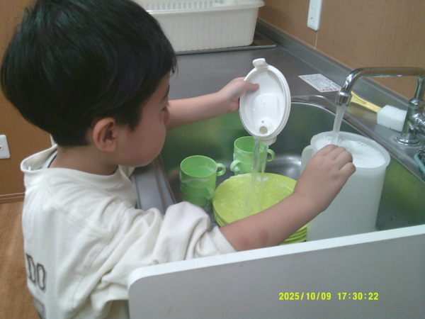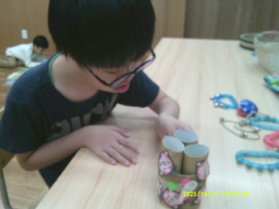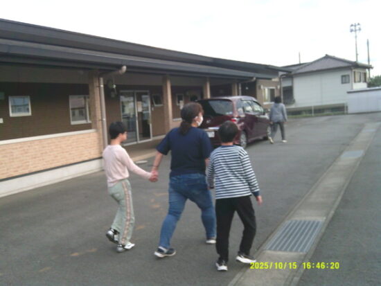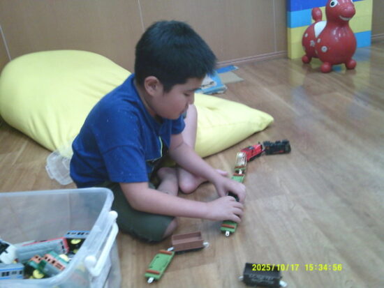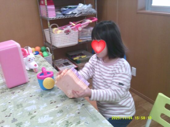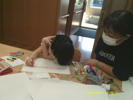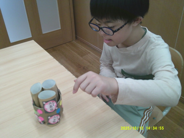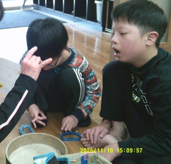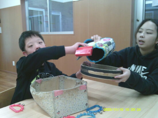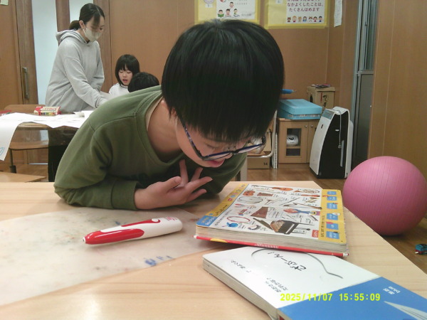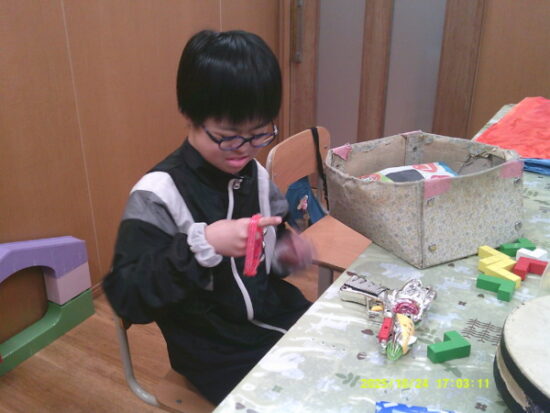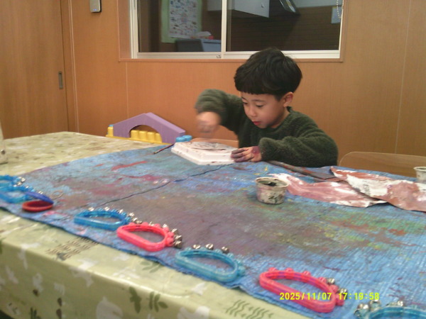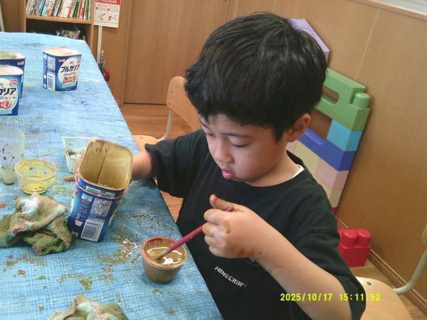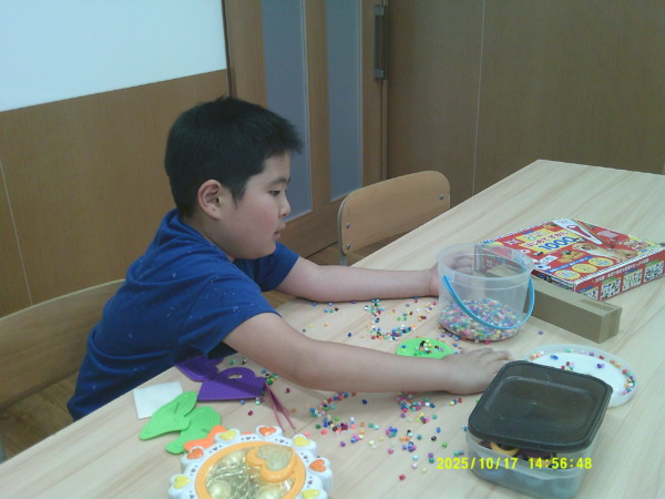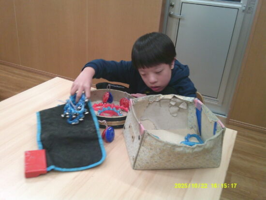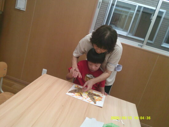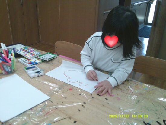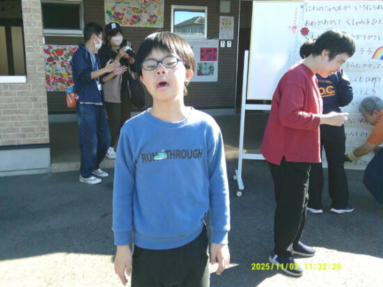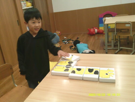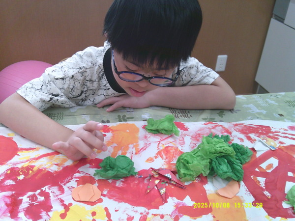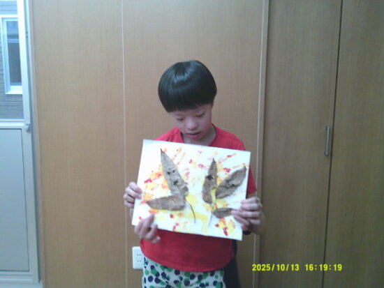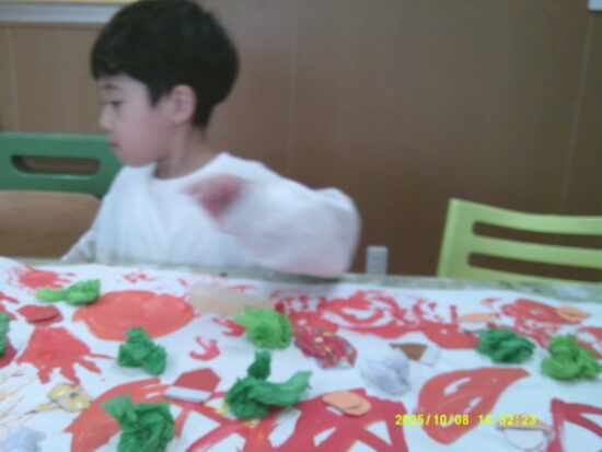 2025年11月10日 4日、遊びの発見やテーブル拭きの係活動も頑張りました(*^-^*) 壁画作りの様子です♬ 畑でピーマンを採りました(*^-^*) 畑を散策しました(*^。^*) それぞれの遊びに集中ですね!指導員もじーっと見つめています((´ω`*) ⇩二人で言葉の練習です!しっかりやろーぜ!! ^^) 2025年11月3日 放ディの子供たちは、感謝祭の賑やかさに圧倒されながらも色々なイベントを楽しみました(^^♪毎回練習したダンスもOGらが加わり盛り上がりました(*^▽^*) ボランティアバンド「ケッセラーズ」さまも素晴らしい生演奏でイベントを最高に盛り上げてくれました♪♪ ↑ 放ディに新しい指導員さんが加わり、平均年齢をぐっと引き下げてくれました(*´▽`*) これからは、フットワークを利かした支援が増えますね(*^-^*) 趣味は「野球」だそうです!!! 2025年10月21日 21日までの放ディの子供たちの様子です。秋の壁画が仕上がりました!思い思いの秋をハンドペイントやお花紙、落ち葉の方に切った段ボールで表現しました(*^▽^*)とても色鮮やかな秋に仕上がりましたね。子供たちの遊びにも色々と変化が見られました。アート大好きな女の子もソフト粘土や音の出る絵本にも興味が湧いてきました。外遊びで友達と秋を見つけたり、生活活後の支援員さんの訪問に遊びの楽しさを逆に教えてあげたり満足感のある過ごし方ができました。個別作品がごうでぃんぐの玄関に飾ってありますのでぜひご覧ください♪ 2025年10月13日 スポーツの日、ディの子供たちと富士西公園へ体力づくりに行きました♪ネット登りでは両手を使って上手に上りました!滑り台も怖がらずスーーーーーーーっと滑りました(^○^) 広い公園でウォーキングもしました!事業所に戻って、振り返りながらハロウィーンの工作づくりも上手にできました。 2025年10月9日 10月7日、支援級さんは、今日、学校が早く終了したのでカフェランチ体験をしました♬自分でお金も払ったよ(*^▽^*) 壁画作りを楽しみました♬その後は外で思い切り体を動かしたよ♬風が気持ちいいね(^○^) スケジュール表を頑張って書いています!!パタカラ体操~準備~♪パパパパ!タタタタ・・・お口の動きに注意で~す!!手伝いで食器洗いをしています!! 投稿のページ送り « 前へ 1 2 3 4 5 … 156 次へ » 2026年 2025年 2024年 2023年 2022年 2021年 2020年