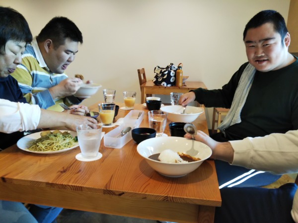 2025年11月30日 11月25日、11月27日の2日間にわたって、西館、本館の仲間たちでクッキングをしました🍲今回はなんとペルー料理🌈その名も「ロモ・サルタド」と「パパ・ア・ラ・ワンカイーナ」🍍ペルーでは人気の料理だそうです🍳ソースはチーズやクラッカーを混ぜてとろみを出して・・どんな味か、はじめて食べる味にみんな興味津々🌞どちらもじゃがいもをふんだんに使ったボリューミーなランチとなりました!お当番の合図でいただきまーす。牛肉がごはんに合う~~♪みんなで美味しくパクパク、大満足の一日でした(^^♪💛 2025年11月28日 11月の目玉行事はみんな大好きカフェランチ🍚就労B型の運営するカフェ&ギャラリーがんじょっぱらで楽しいランチタイムを過ごしました🎵みんなでお行儀よくいただきます!!カレーライスやナポリタン、ピラフなど好きなメニューを選んで、食後のアイスクリームもペロッと完食です🍛食べ終わるとお会計も自分でできました(^^♪またカフェランチしようね。ご馳走さまでした🌼 2025年11月3日 11月3日(月曜日)第12回ごうでぃんぐ感謝祭を行いました🍠今年のテーマは『虹』🌈です。虹をテーマにした壁紙作りやパフォーマンスを行いました!当日の朝に正面に飾るお花を生け、華やかにご来場者様を迎えることが出来ました🌷音楽療法で練習してきた『虹』の歌も伸び伸びと発表ができました!!感謝祭終了後のお昼にB型が作った焼きそばや生活で作ったチキンナゲットを食べ大満足でした🍗 2025年 2024年 2023年 2022年 2021年 2020年